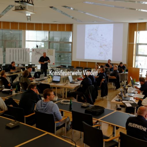 Von der FTZ Verden wurden die Züge über Funk zu den Einsätzen abgerufen. Als Lagen wurden eine BMA-Auslösung an der Berufsbildenden Schule durch einen Kellerbrand angenommen. Dies ging einher mit einer notwendigen Evakuierung von rund 60 Personen, die von der Stadtjugendfeuerwehr Verden dargestellt wurden. Elf Kinder, die im gesamten Gebäude verteilt waren, hatten zum Teil schwere Verletzungen erlitten. Die Verletzungsmuster wurden realitätsnah vom DRK, der Fachabteilung Realistische Unfalldarstellung, vorbereitet. Als vordringlichste Maßnahme wurde die Menschenrettung eingeleitet. Der Fachzug Personal bekam den Auftrag, unter Atemschutz in den stark verqualmten Keller vorzugehen, um drei vermisste Schüler zu suchen und zu retten. Einige Betroffene machten den Einsatzleiter aufgeregt auf weitere Personen aufmerksam, die unbedingt Hilfe benötigten. Um den Überblick über die umfangreiche Lage zu behalten, wurde daher die Technische Einsatzleitung und der Fachzug Kommunikation mit dem Abrollbehälter Einsatzleitung eingesetzt, um den Einsatzleiter zu unterstützen. Umfangreiche Kräfte des Rettungsdienstes mussten darüber hinaus angefordert werden, um sich bei der Massenanfall von Verletzten – Situation um die zahlreichen Betroffenen und Verletzten versorgen zu können. Parallel zur Menschenrettung wurde unter Atemschutz die Brandbekämpfung im Keller eingeleitet.