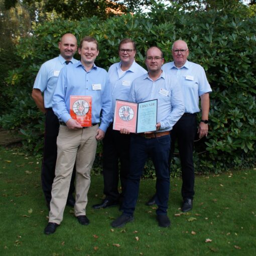 Anschließend berichtete der stellvertretende Kreisbrandmeister Olaf Dykau über den Einsatz der Kreisfeuerwehrbereitschaft im Landkreis Hildesheim anlässlich der Flutkatastrophe im Juli. Insgesamt 30 Stunden war damals die Kreisfeuerwehrbereitschaft Verden in Heersum an der Innerste im Einsatz. Ein Deichbruch hatte das Dorf Heersum teilweise geflutet und in Zusammenarbeit mit THW, DLRG sowie örtlicher Feuerwehren wurde versucht die Ortschaft vor den Wassermassen zu schützen und überflutete Bereiche wieder trocken zu legen. Dazu wurden rund 15000 Sandsäcke mit über 100 Tonnen Sand gefüllt und verbaut. Einen großen Dank sprach Dykau den damals eingesetzten Kräften aus, zudem wurde den Stadt- und Gemeindebrandmeistern stellvertretend für alle eingesetzten Kräfte eine Dankesurkunde des Landes Niedersachsens überreicht.