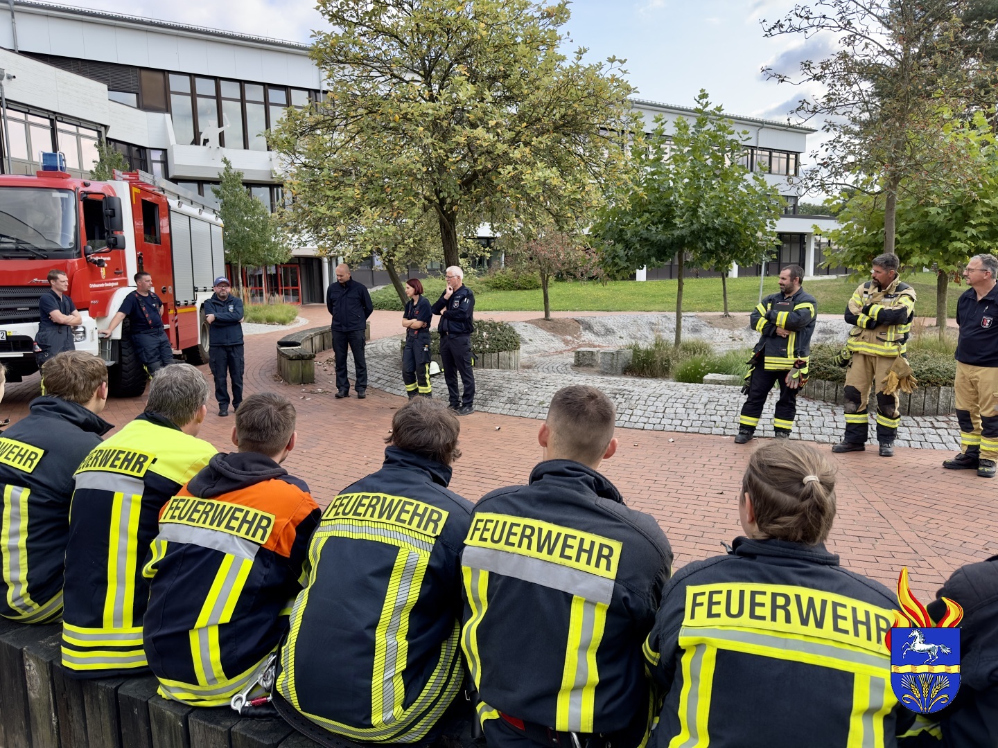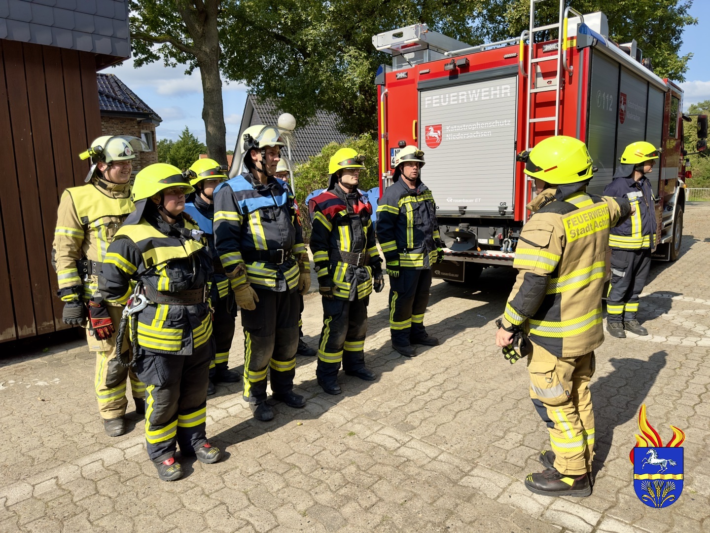 Nach einem theoretischen Vorbereitungsabend galt es für die Prüflinge dann am gesamten Samstag verschiedene Einsatzlagen abzuarbeiten und dabei sämtliche Positionen innerhalb einer Löschgruppe zu besetzen, erläutert der stellvertretende Kreisbrandmeister Mario Rosebrock. Gemeinsam mit den Kreisausbildungsleitern hatte er die grundlegende Ausrichtung der neuartigen Grundlagenausbildung im Landkreis Verden geschaffen, die anschließen vom Team der Kreisausbilder mit Leben gefüllt wurde. Dazu war es auch erforderlich das Ausbilderteam deutlich aufzustocken, wozu sich zahlreiche Feuerwehrkräfte aus allen Kommunen des Landkreises zusätzlich zu ihrem normalen Einsatz- und Ausbildungsdiensten bereit erklärten, so Rosebrock.