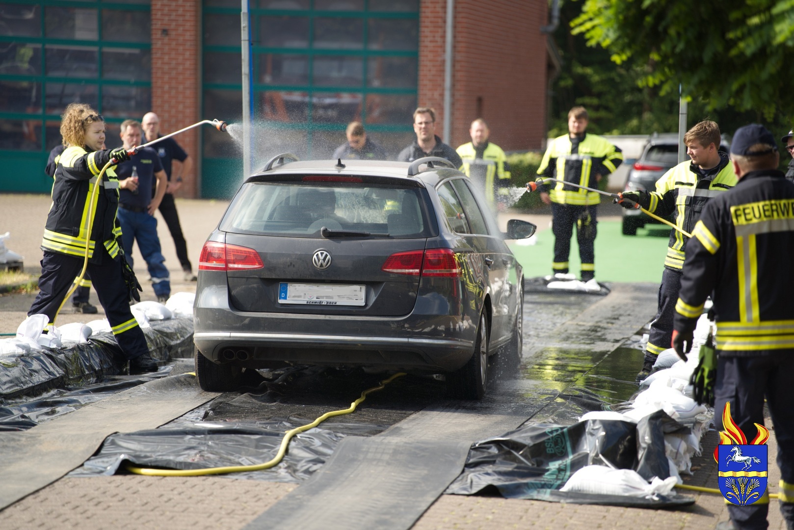 Zur Vorbereitung auf einen möglichen Tierseuchenausbruch hatte das Veterinäramt des Landkreises Verden kürzlich zu einer groß angelegten Tierseuchenübung auf das Gelände der Feuerwehrtechnischen Zentrale (FTZ) in Verden eingeladen. Ziel der Übung war es, den Aufbau und Betrieb einer Fahrzeughygieneschleuse im Zusammenspiel aller Beteiligten zu trainieren und gleichzeitig die Funktionsfähigkeit einer solchen Anlage zu überprüfen.