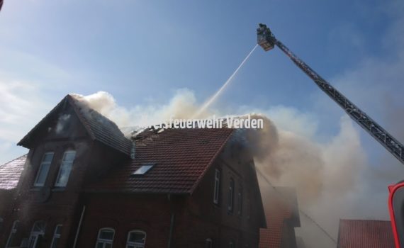 Kurz vor 16 Uhr kam es in der Dorfstraße in Luttum zu einem Dachstuhlbrand. Bei Eintreffen der ersten Einsatzkräfte stand der Dachstuhl bereits in Vollbrand, Flammen schlugen auf ganzer Länge aus dem Dach des älteren Einfamilienhauses. Umgehend nahm die Feuerwehr einen Löschangriff vor, hier kam auch die Drehleiter aus Verden […]