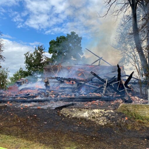 Am Freitagmorgen gegen 08:00 wurde ein sich ausbreitender Brand im Garten eines Zweifamilienhauses in Wahnebergen gemeldet. Bei Eintreffen der ersten Kräfte hatte sich der Brand vom Garten bereits auf die Garage sowie Teiles des Daches einer Doppelhaushälfte ausgebreitet. Aufgrund der schnellen Brandausbreitung wurden neben den Feuerwehren der Gemeinde Dörverden auch Kräfte der Stadtfeuerwehr Verden zur Unterstützung hinzualarmiert. Umgehend bauten die Einsatzkräfte eine umfangreiche Riegelstellung auf und begannen einen Brandangriff von innen, um eine weitere Brandausbreitung zu verhindern. Während der eigentliche Brand schnell gelöscht werden konnte, zogen sich die Nachlöscharbeiten einige Zeit hin. Unter anderem musste das Dach über die Drehleiter der Ortsfeuerwehr Verden abgedeckt werden, um auf verbliebene Glutnester zu kontrollieren und diese abzulöschen. Insgesamt rund 70 Einsatzkräfte der Ortsfeuerwehren Dörverden, Stedorf, Verden und Wahnebergen sowie des Rettungsdienstes und der Polizei waren in das Einsatzgeschehen eingebunden.