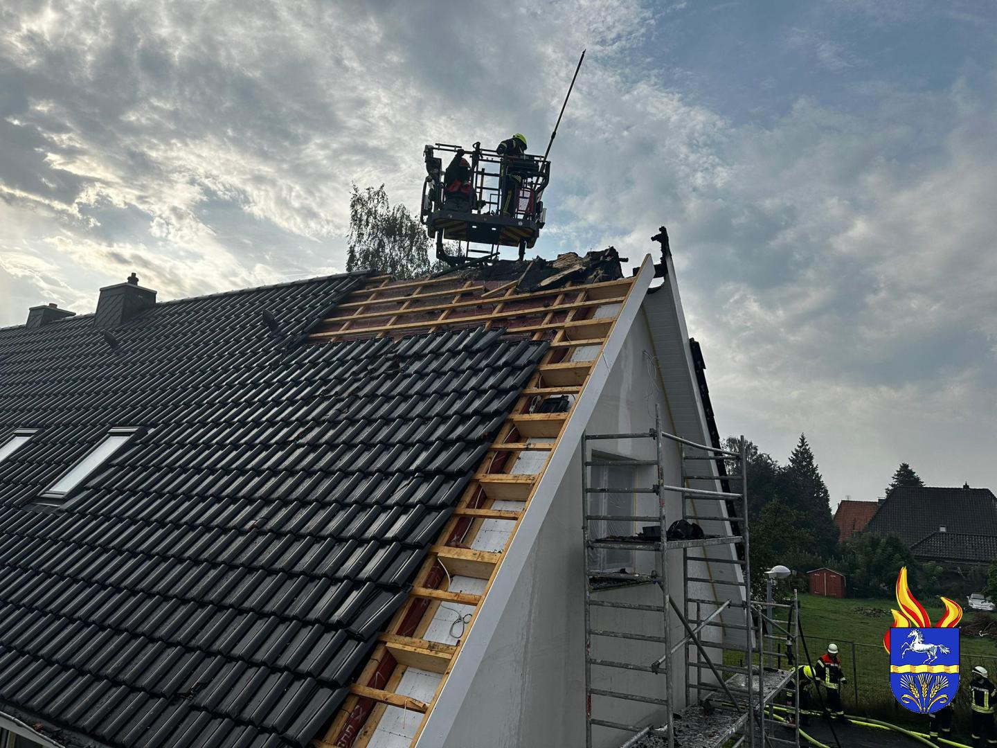 Blitzeinschlag setzt Dachstuhl in Brand: Feuerwehren im Großeinsatz