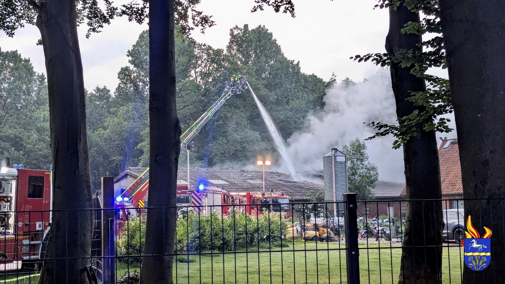 Gegen 03:00 Uhr am Montagvormittag wurden Flammen aus einem als Maschinenhalle genutzten Stalls an der Brammer Dorfstraße in Kirchlinteln – Brammer gemeldet. Von einem Gebäudevollbrand ausgehend wurde umgehend ein Großaufgebot an Einsatzkräften alarmiert, die durch einen großangelegten Löschangriff die Flammen zügig niederschlagen konnten. Eine Riegelstellung schützte zudem in der Erstphase eine direkt angrenzende Wohnbebauung.