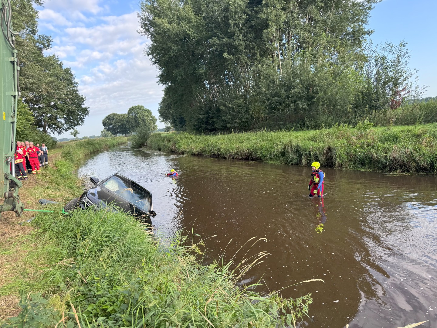 Der Fahrer konnte sich Gott sei Dank unverletzt über die Beifahrertür selbst retten und ans Ufer schwimmen.