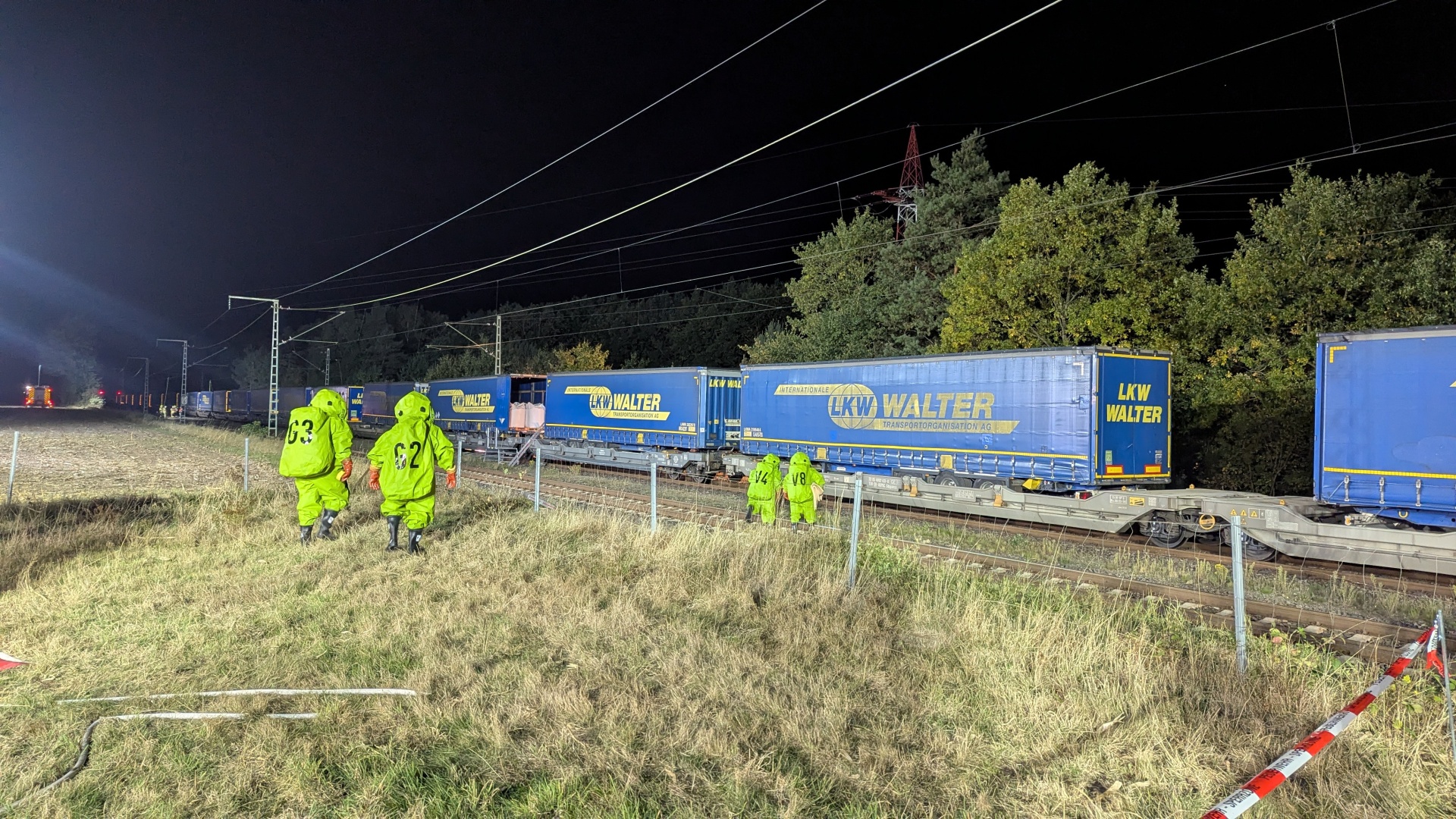 Holtum (Geest) – Am Mittwoch, den 01.10.2025, kam es auf einem Haltegleis der Bahnstrecke zwischen Verden und Rotenburg/Wümme zu einem Gefahrguteinsatz. Gegen 17:23 Uhr wurde die Feuerwehr- und Rettungsleitstelle alarmiert, nachdem ein Lokführer bei der Abfahrtkontrolle feststellte, dass aus einem mit Gefahrgut gekennzeichneten Anhänger ein Granulat ausgetreten war.